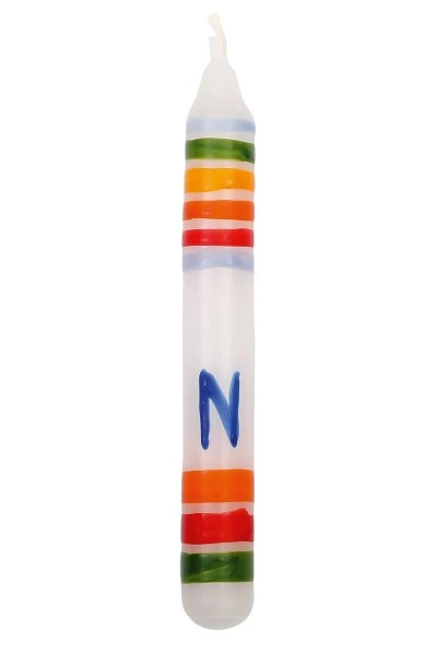 Eine Kerze mit dem Buchstaben N in schönen lebendigen Farben. Die tolle kleine Kerze ist wunderbar fröhlich gestaltet und begeistert mit schönen Kontrasten.