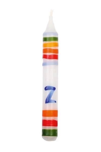 Eine Kerze mit dem Buchstaben Z in schönen lebendigen Farben. Die tolle kleine Kerze ist wunderbar fröhlich gestaltet und begeistert mit schönen Kontrasten.