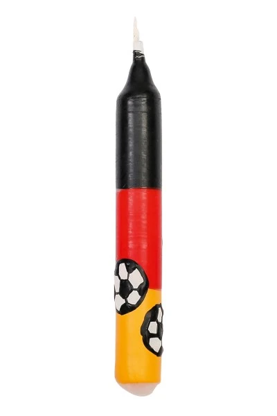 Eine Kerze Typ Fußbälle in schönen lebendigen Farben. Die tolle kleine Kerze ist wunderbar fröhlich gestaltet und begeistert mit schönen Kontrasten.