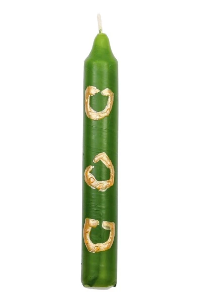 Eine Hufeisen-Kerze in tollem Grün. Die tolle kleine Kerze ist wunderbar fröhlich gestaltet und begeistert mit schönen Kontrasten.