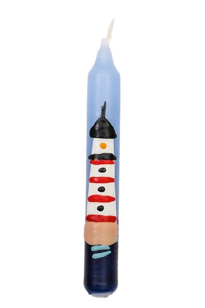 Eine Leuchtturm-Kerze mit tollen Farben. Die tolle kleine Kerze ist wunderbar fröhlich gestaltet und begeistert mit schönen Kontrasten.