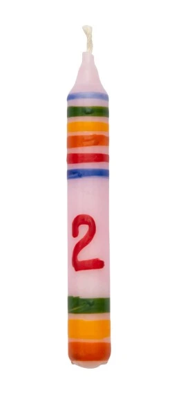 Eine Kerze mit der Zahl 2, Typ Rosa in schönen lebendigen Farben. Die tolle kleine Kerze ist wunderbar fröhlich gestaltet und begeistert mit schönen Kontrasten.