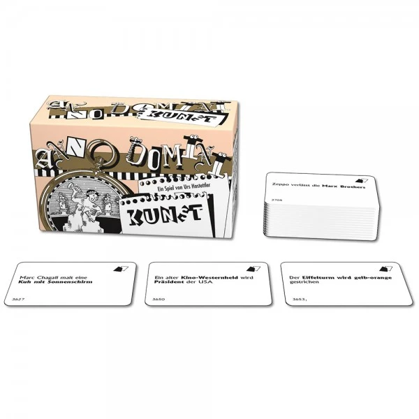 Bei Anno Domini müssen Ereignisse in die richtige zeitliche Abfolge gebracht werden. Es kommt dabei jedoch nicht auf exaktes Wissen an. Denn wer weiß schon, ob „Marc Chagall eine Kuh mit Sonnenschirm malte“ bevor oder nachdem „der Eiffelturm gelb-orange angestrichen wurde“. Wer gut bluffen kann hat beste Chancen seine Karten als Erster loszuwerden und damit zu gewinnen. Die richtige Mischung aus bekannten und kuriosen Ereignissen garantiert jede Menge Spaß für die ganze Familie.
