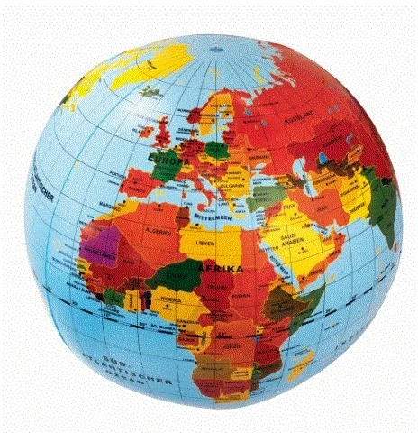 Wasserball in Globusform zum Aufblasen und Lernen. Länder, Meere, Kontinente…
