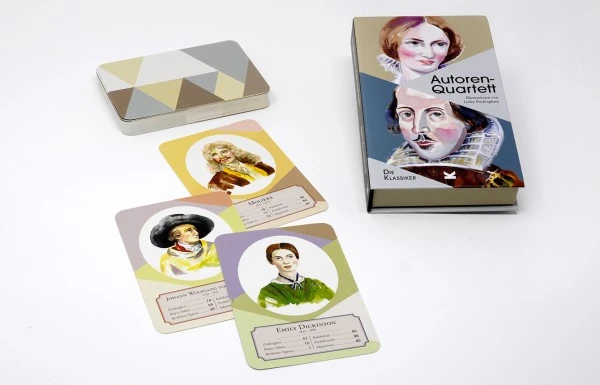 Beim Autoren-Quartett Die Klassiker erwachen Dickens, Balzac, und, und, und zum Leben. Wer ist am zeitlosesten? Wer schreibt die radikalsten Schriften? Alle Fans von klassischer Literatur werden begeistert von diesem Quartett sein. Aber auch Neueinsteigerinnen und Neueinsteiger in der literarischen Welt können staunen, denn sie erhalten durch das Spiel eine erstklassige Einführung in die Unterschiede der verschiedenen Schriftstellerinnen und Schriftsteller.