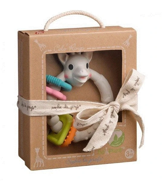 Dieser Beißring mit der beliebten Sophie La Giraffe ist aus 100% natürlichem Kautschuk und mit Lebensmittelfarbe bemalt. es gibt zahlreichen weichen Abschnitten zum Kauen, Fühlen und Greifen. Das lindert die Unannehmlichkeiten beim Zahnen. In der hochwertigen Verpackung ist er auch hervorragend als Geburtsgeschenk geeignet.
