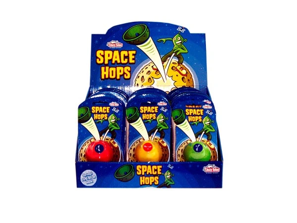 Space Hop – Eine hüpfende Gummischeibe mit Halteknopf.