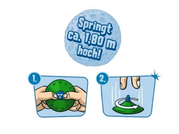 Die Gummischale wird einmal mit Druck umgestülpt und dann mit einem Spin auf den Boden fallen gelassen. Bei Bodenkontakt springt die Schale zurück in ihre alte Form und wird mit Schwung nach oben katapultiert. Hopp! • Durchmesser ca. 5,5cm • empfohlen ab 6 Jahren