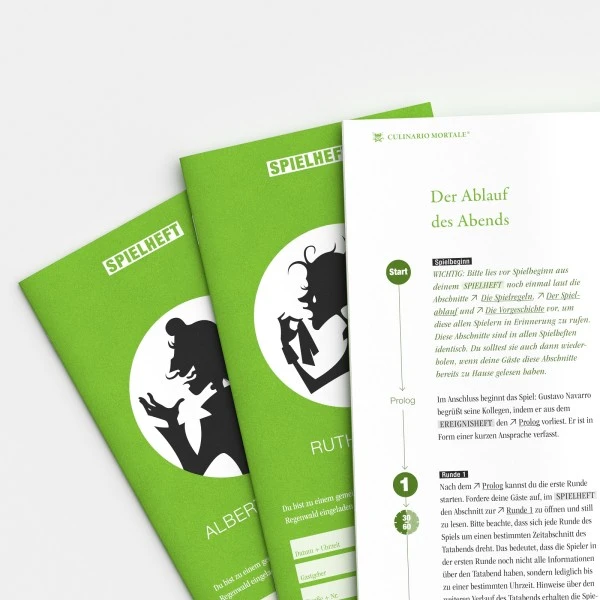 Wie geht das denn? Ihr ladet Gäste zum Essen ein, aber dieses Mal wird nicht nur gegessen, sondern ihr und eure Gäste werdet Teil einer spannenden und amüsanten Kriminalgeschichte. Die Spielpackung enthält die Rollenbeschreibungen, die Geschichte und viele Anregungen.