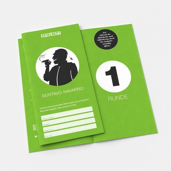 • Inhalt: 1 Spielanleitung, 7 Spielhefte, 1 Ereignisheft (beinhaltet Prolog, Ereignisse und Auflösung), 7 Namensschilder, 1 Support-Code