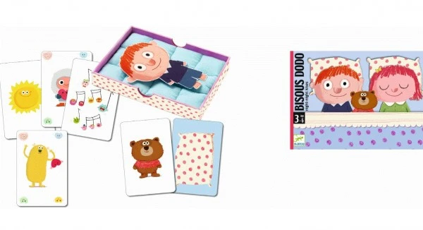 Bisous Dodo („Gute Nacht Küßchen“) ist ein süßes kleines Kartenspiel zur Einschlafzeit. Ein schönes Ritual zum Zubettbringen kleinerer Kinder.