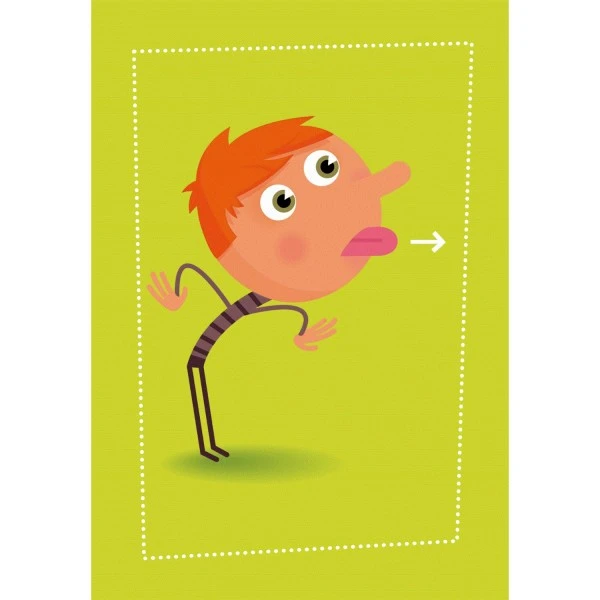 Im Stile von „Ich packe meinen Koffer mit…“ werden reihrum Karten mit Aktionen aufgedeckt: Zunge rausstrecken, Hände klatschen, auf den Boden stampfen,… Alle Aktionen müssen vom nächsten Spieler immer in der gleichen Reihenfolge wiederholt werden und jedesmal kommt eine dazu. Viel Spaß!