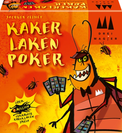 Beim Drei Magier® Kakerlakenpoker geht es hoch her. Denn niemand möchte 4 Kakerlaken, Stinkwanzen oder Spinnen auf der Hand haben. Doch die Mitspielerinnen und Mitspieler versuchen immer wieder, dir ihre Karten anzudrehen. Da heißt es ruhig bleiben und bluffen, bluffen, bluffen!