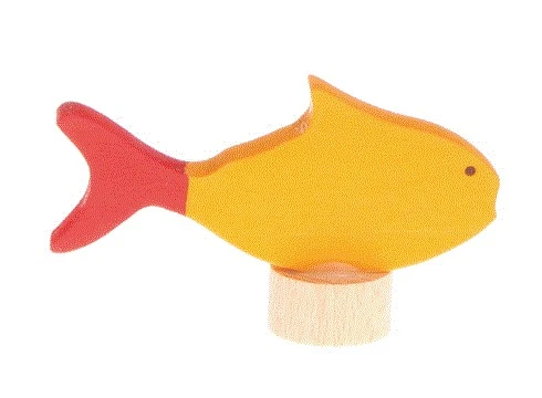 • Holzfisch mit roter Schwanzflosse als Deko-Stecker für Geburtstagsring und Geburtstagskranz