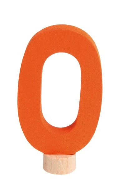 Orangefarbener Dekostecker von Grimm´s Spiel- und Holzdesign aus Holz in Form der Zahl 0 für den Geburtstagsring.