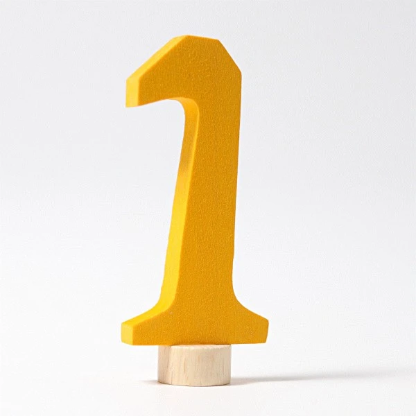 Der gelbe Zahlenstecker (1) von Grimms passt perfekt auf den Geburtstagsring. Natürlich lassen sich die Zahlen auch mit anderen Steckern kombinieren. Zusammen mit anderen Zahlen können die Stecker auch für den Jahreszeitenring verwendet werden, um den jeweiligen Monat anzuzeigen.