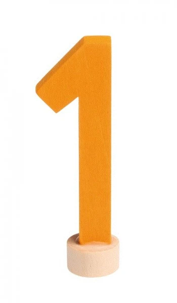 Gelber Dekostecker von Grimm´s Spiel- und Holzdesign aus Holz in Form der Zahl 1 für den Geburtstagsring.