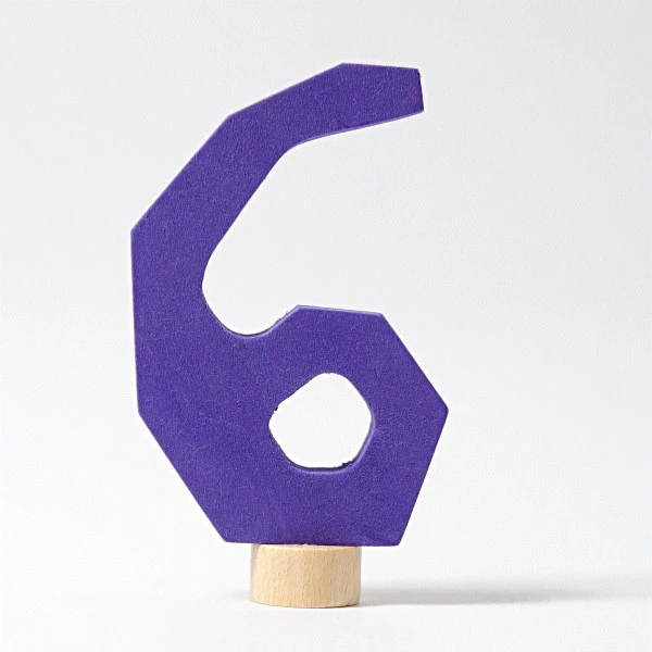 Der lila Zahlenstecker (6) von Grimms passt perfekt auf den Geburtstagsring. Natürlich lassen sich die Zahlen auch mit anderen Steckern kombinieren. Zusammen mit anderen Zahlen können die Stecker auch für den Jahreszeitenring verwendet werden, um den jeweiligen Monat anzuzeigen.