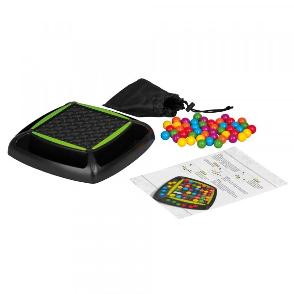 Beinm Schiebespiel Collecto werden die kunterbunten Kugelr-Reihen strategisch umhergeschoben. Liegen zwei oder mehr Kugeln der selben Farbe nebeneinander: Volltreffer! Wieder ein paar Punkte eingesackt. 2-4 Personen spielen dabei mit und so wird das ganze natürlich zu einer spannenden und kniffligen Aufgabe. Kugeln werden kreuz und quer hin und zurück geschoben und die Spannung steigt! • Schiebespiel Collecto