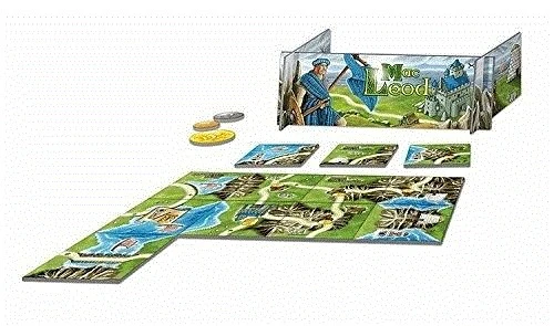 • Inhalt: 1 Spielplan, 16 Wertungsplättchen, 78 Landschaftsplättchen, 1 Beutel, 5 Wertungsmarker, 6 Abwurfplättchen, 6 Sichtschirme, 1 Rundenmarker, 1 Startspielerplättchen, 73 Münzen und 1 Regelheft