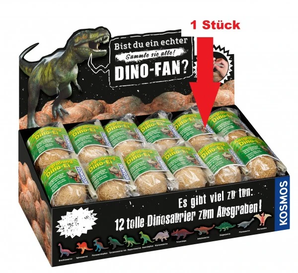 Eine von 12 Dino-Sammelfiguren verbirgt sich in diesem Ei. Wie du da ran kommst? Es wird ausgegraben wie ein Archäologe. Mit dem kleinen beiliegenden Meißel wird Stück für Stück freigelegt.