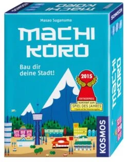 Städtebau mit Würfeln und Karten. Mit den Bauprojekten der Karten kann Geld erwitschaftet werden, aber das will gut geplant sein…
