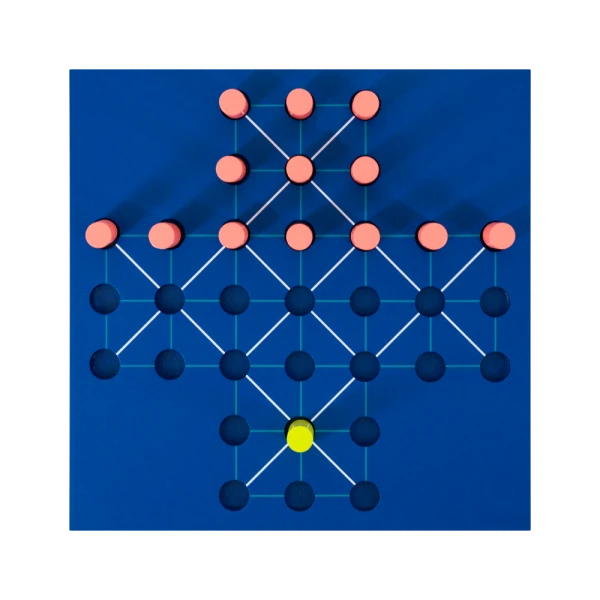 • Inhalt: 1 Spielbrett, 1 Jäger-Spielstein, 13 Gejagte-Spielsteine, 1 Stoffbeutel, 1 Spielanleitung
