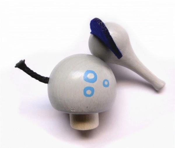 Sie ist aus Holz gefertigt und umweltfreundlich lackiert. Ohren und Schwanz sind aus Filz und Schnur.