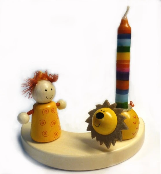 Gut gebrüllt Löwe, nun wird das Geburtstagskind angelächelt! Dieser Löwen-Kerzenhalter als Steckfigur für den Geburtstagskranz ist ca. 6 Zentimeter breit und 5cm hoch (incl. Stecker) und ergänzt den rundum-Geburtstagsring sehr gut. Die rundum-Geburtstagsstecker passen aber auch in viele andere Systeme, der Durchmesser des Steckzylinders beträgt 1,7cm.