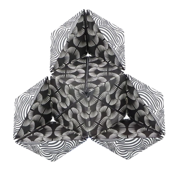 Er ist an 2 Ecken zu öffnen, aus Pyramiden zusammengesetzt, mit Gelenken verbunden und mit 36 versteckten Magneten stabilisiert.