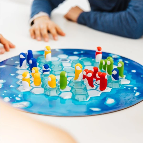Kuschel-Kolonien ist ein witziges Kinder- und Familienspiel von Smartgames, bei dem ihr die verstreuten Pinguine in ihren gleichfarbigen Familien zusammenführen sollt. Dabei können die Pinguine nicht nur auf den Eisschollen vorwärtsgehen, sondern auch andere Pinguine überspringen oder unter dem Eis tauchen. das geht manchmal am schnellsten!