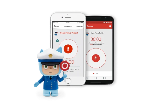 Eigene Musik oder Hörspiele mit der Toniebox hören? Mit dem Kreativ-Tonie wird dieser Wunsch wahr. Hier in Form des Polizisten. Voraussetzung ist ein kostenloses Toniecloud-Kundenkonto. Laden Sie eigene Audio-Inhalte einfach in die Cloud. Zum Bespielen des Kreativ-Tonies stellen Sie diesen wie gewohnt auf die Toniebox. Mit der Tonie-App für das Smartphone können Sie dann einfach die Inhalte auswählen, die mit dem Tonie verbunden werden sollen.