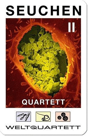 Lyme-Borreliose, Legionärskrankheit, Lungenentzündung, Röteln, Mumps, Influenza, Hepatitis C, Diphtherie, Meningitis u.v.a. finden sich auf den Seuchenquartett-Karten.