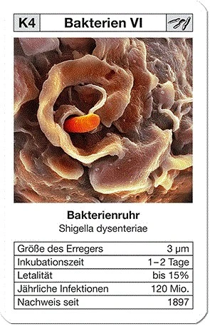 • Spielkategorien: Größe des Erregers, Inkubationszeit, Letalität, jährliche Infektionen, Nachweis seit