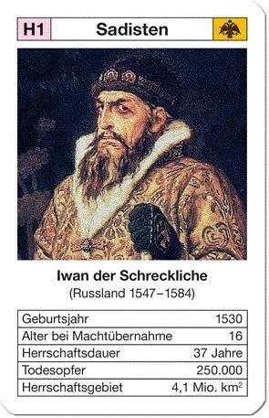 Spielkategorien: Geburtsjahr, Alter bei Machtübernahme, Herrschaftsdauer, Todesopfer, Herrschaftsgebiet